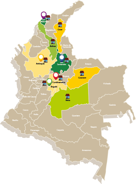 Nuestra operación se distribuye en diferentes municipios de Colombia y tenemos establecida nuestra sede principal en el municipio de Floridablanca, Santander, además de plantas de proceso ubicadas en el municipio de Puerto Gaitán, en el departamento del Meta, y en la ciudad de Bogotá.