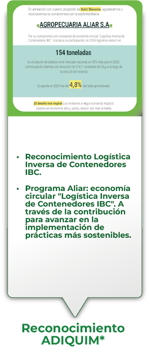 Aliar es una empresa agroindustrial que integra cada una de las etapas de la cadena productiva; por ello, desarrollamos nuestras operaciones de manera articulada a través de las diferentes unidades de negocio, lo que nos permite asegurar la trazabilidad, la gestión integral de los procesos y la obtención de productos de alta calidad a lo largo de toda nuestra cadena productiva.