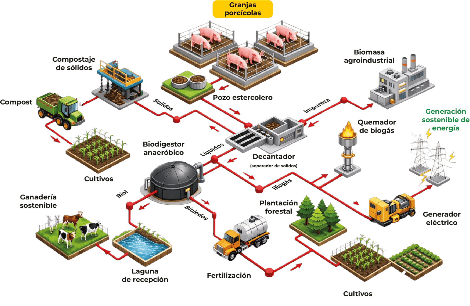 En el núcleo Fazenda, ampliaremos el aprovechamiento de las mortalidades e incorporaremos este material al proceso de biodigestión para aumentar la producción de biogás y fortalecer el potencial energético. Asimismo, avanzaremos en la conducción de este subproducto para emplearlo como combustible limpio en la agroindustria.